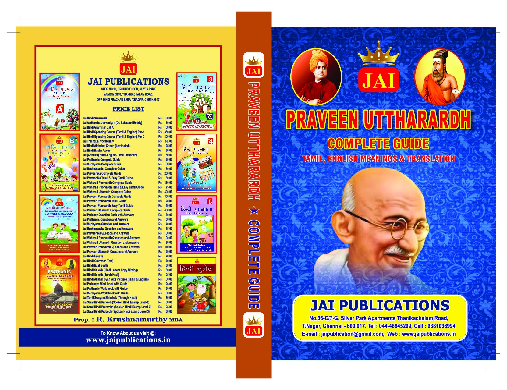 We  JAI PUBLICATIONS  have been serving the needs for books from Schools, Colleges, Children and also readers of all ages with our base at Chennai since 1992.