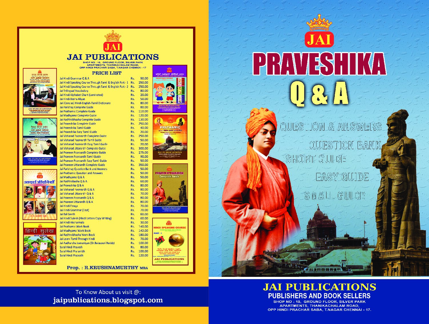 We JAI PUBLICATIONS have been serving the needs for books from Schools, Colleges, Children and also readers of all ages with our base at Chennai since 1992.